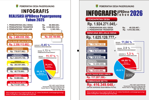 INFOGRAFIS Realisasi APBDes Tahun 2025 dan Penetapan ABDesa Pagergunung Tahun 2026